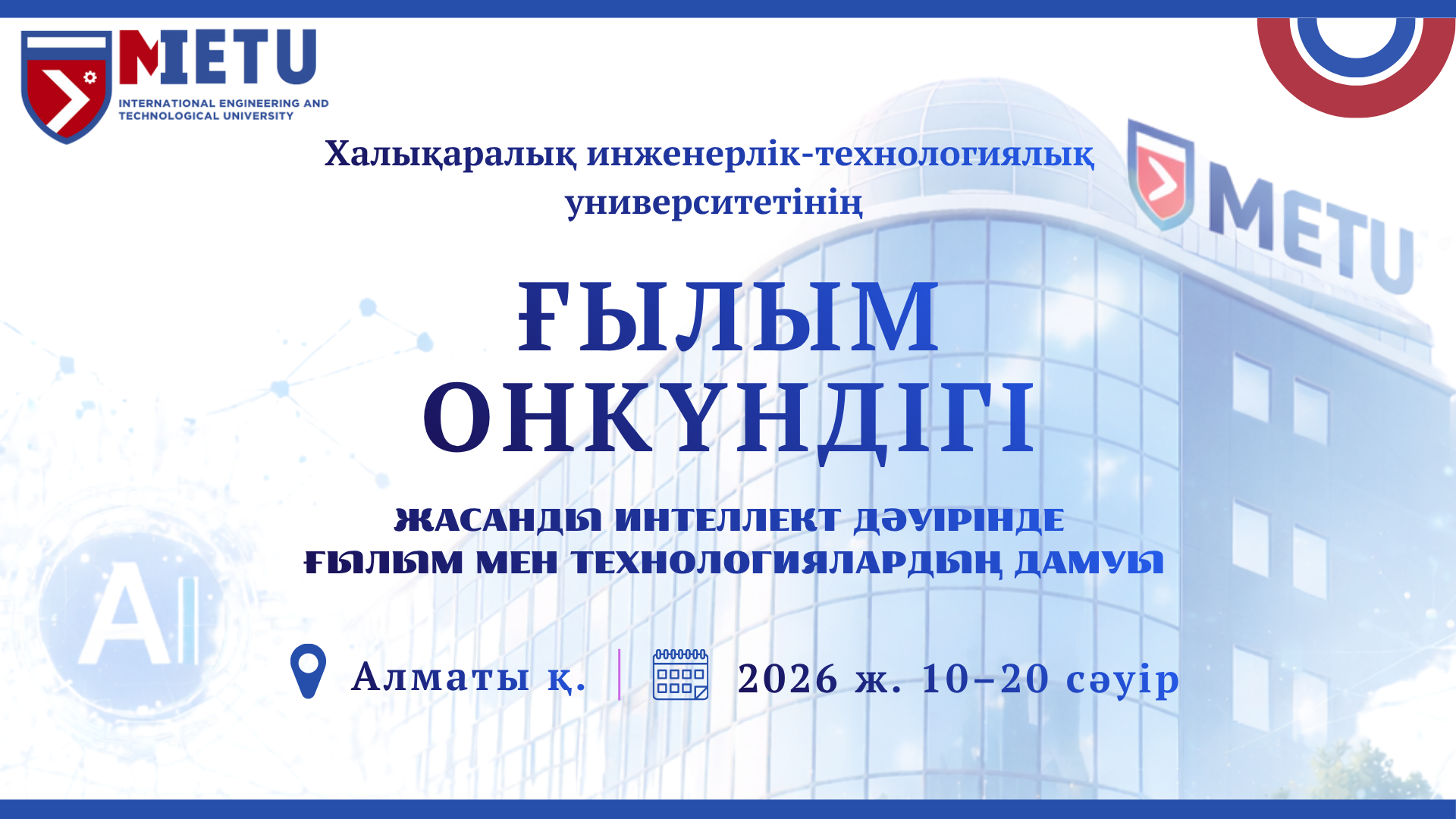 Сіздерді 2026 жылғы 10–20 сәуір аралығында Халықаралық инженерлік-технологиялық университетінде өтетін Ғылым онкүндігі шеңберіндегі іс-шараларға қатысуға шақырамыз.