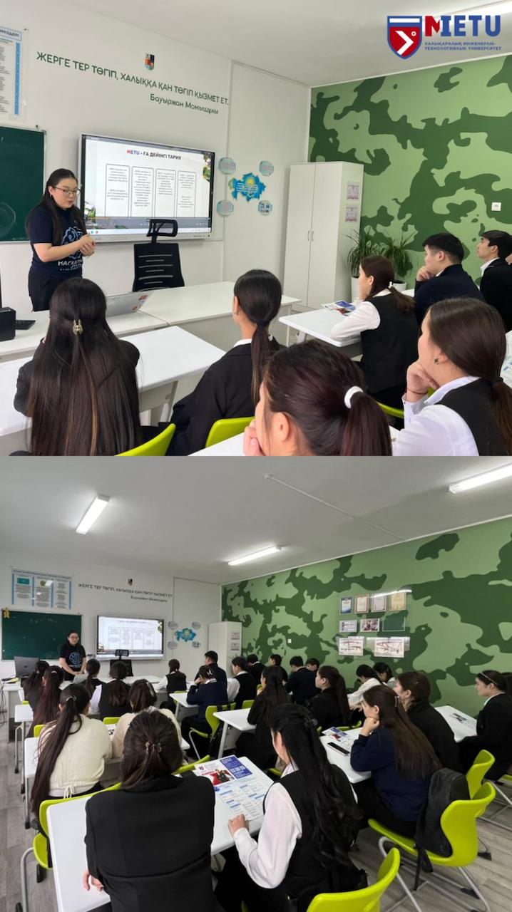 Студент группы ТМО-25-1.2к Саламат Акбота провела профориентационную работу среди учащихся 9–11 классов в школе (ресурсном центре) имени Т. Рыскулова, расположенной в селе Мойынкум Мойынкумского района Жамбылской области.