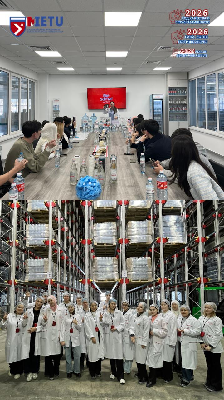 17 февраля 2026 года студенты образовательной программы «6В07203 - Технология и инжиниринг пищевых производств» в рамках дисциплины «Технохимический контроль, оценка качества и безопасность продукции растениеводства» посетили компанию Керемет Су СКЕ. Экскурсию для студентов провели лектор Таутаева А.Т. совместно с начальником центра карьеры Жанылхановой Ш.Ж.