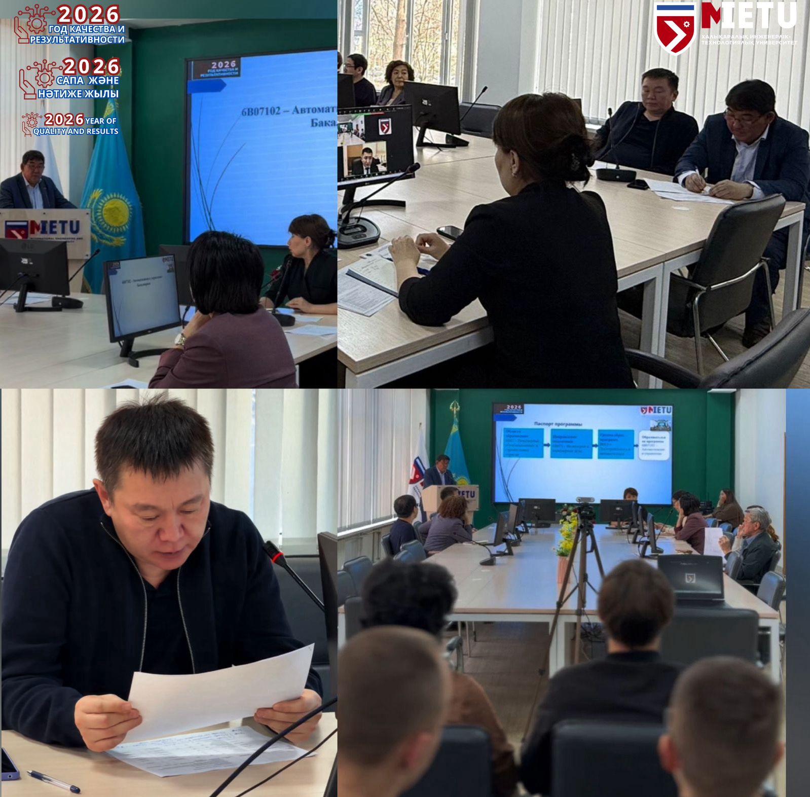 Заведующий кафедрой Бактыбаев М.К., представил описание программы, академический состав и ведущих преподавателей, рассказал о будущих профессиях и навыках, которые получают студенты. В обсуждении приняли участие студенты, преподаватели, представители индустрии, включая члена академического комитета Сатова Е.М., главного инженера АСУ ТП ТОО.