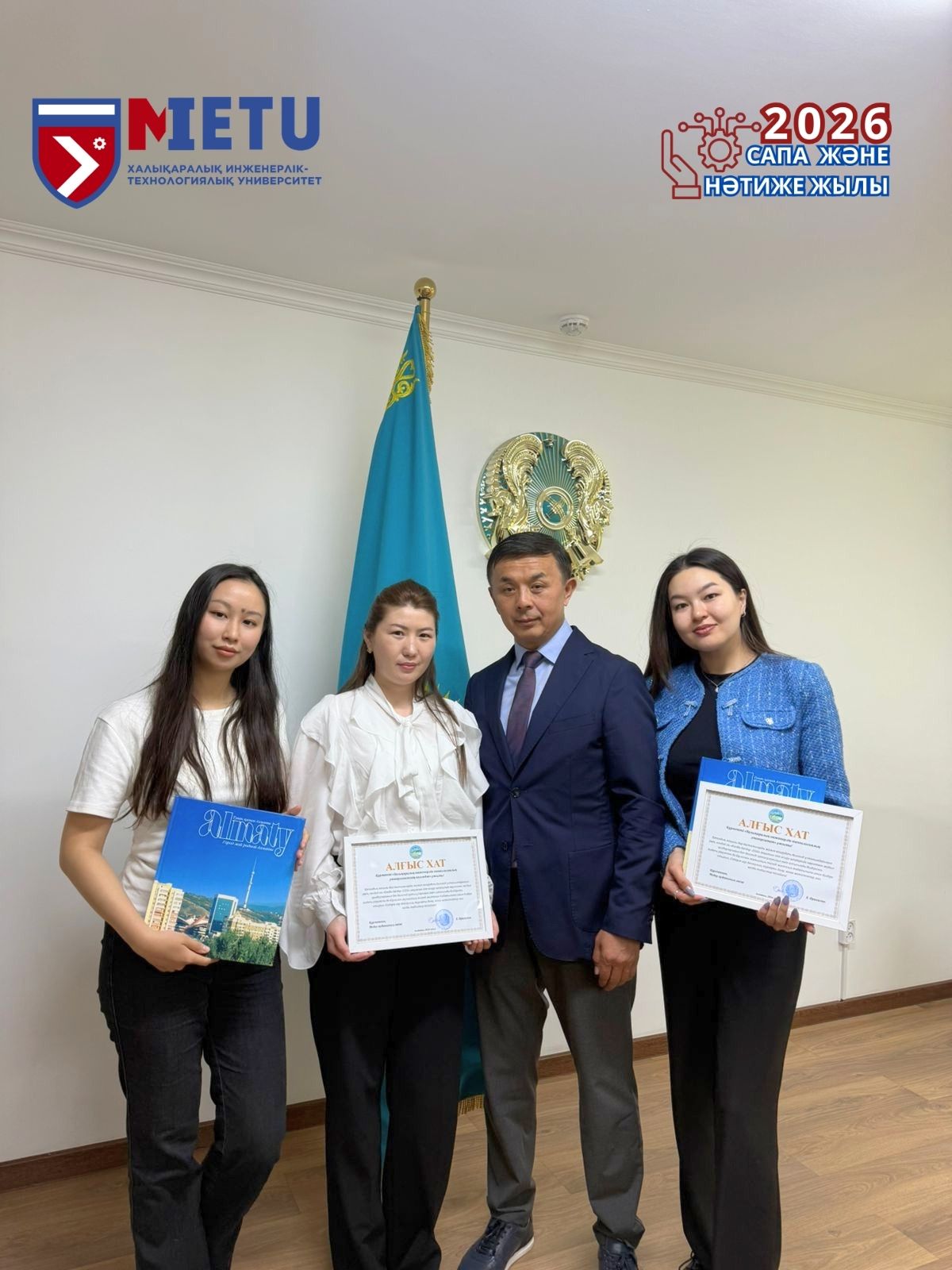 29 апреля 2026 года заместитель акима Медеуского района города Алматы Нурлыбаев Айдос Аскарович выразил благодарность университету и колледжу METU за активную профориентационную работу, проведённую в марте и апреле 2026 года.