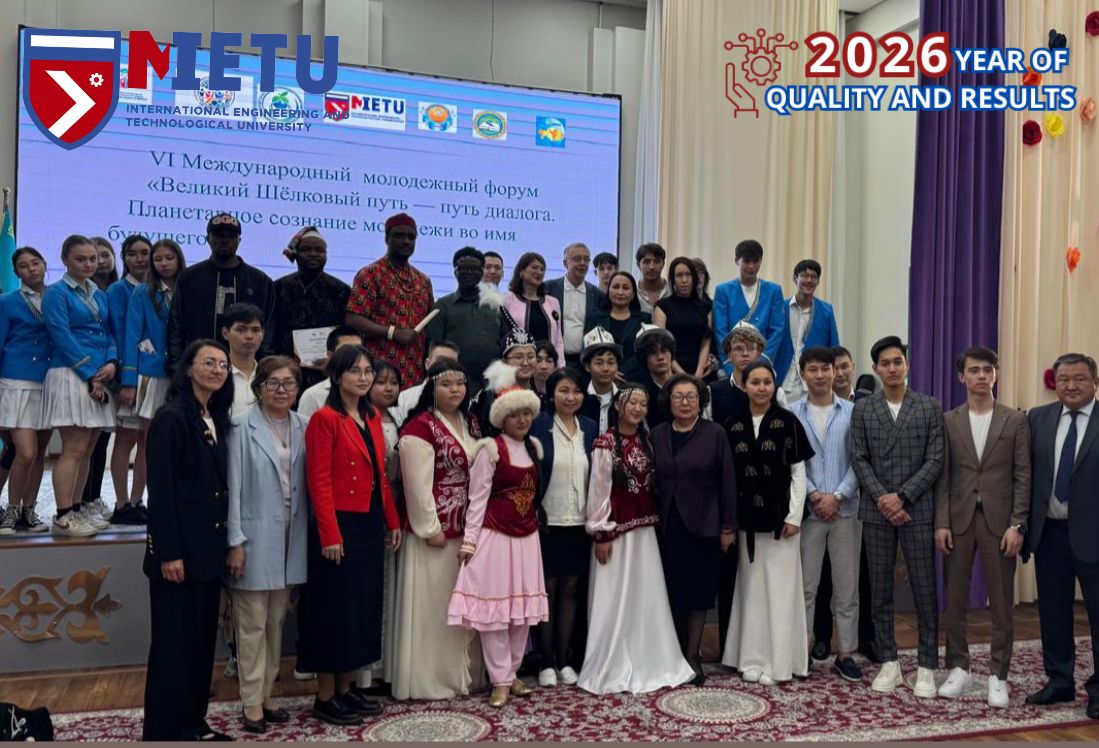 30 апреля 2026 года иностранные студенты Международного инженерно-технологического университета приняли участие в VI Международном молодежном форуме «Великий Шёлковый путь — путь диалога. Планетарное сознание молодежи во имя будущего». Мероприятие, приуроченное к 90-летию Олжаса Сулейменова и организованное в преддверии Дня единства народа Казахстана, было направлено на развитие межкультурного взаимодействия и формирование глобальной гражданственности. Являясь официальным партнером Международного Центра сближения культур под эгидой ЮНЕСКО, METU на системной основе поддерживает международные инициативы, способствующие интеграции вуза в мировое научно-образовательное пространство.