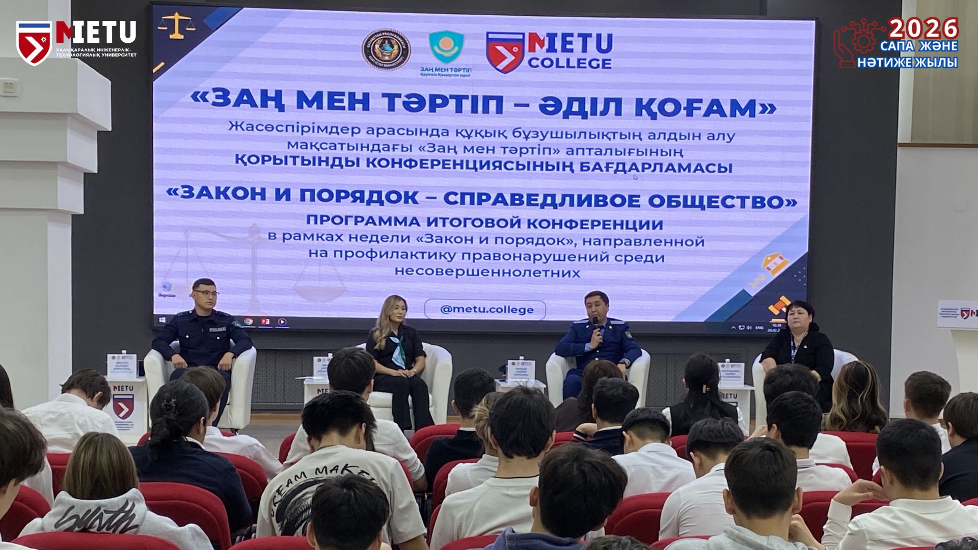 В Международный инженерно-технологический университет состоялась встреча студентов с представителями органов правопорядка в рамках проекта «Закон и Порядок» («Заң мен тәртіп»). Инициатором и организатором мероприятия выступил колледж METU, однако сама встреча прошла в стенах университета, объединив студентов и преподавателей.