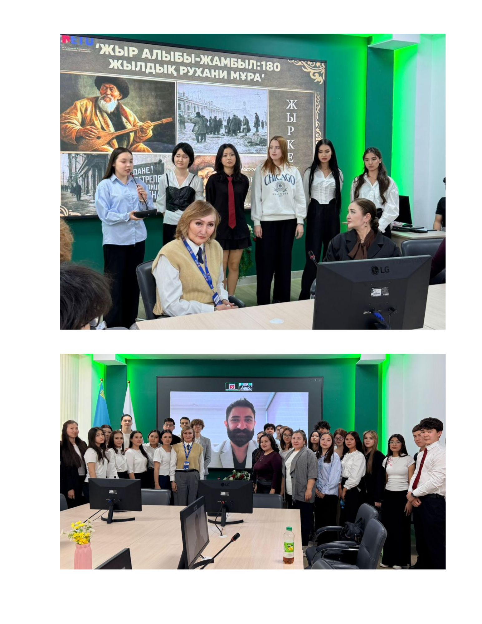 Также участники подготовили презентации, посвящённые жизненному пути и творческому наследию Жамбыла Жабаева. Завершением программы стал показ тематического видеоролика и интерактивная игра, позволившая гостям глубже познакомиться с культурным наследием великого акына.