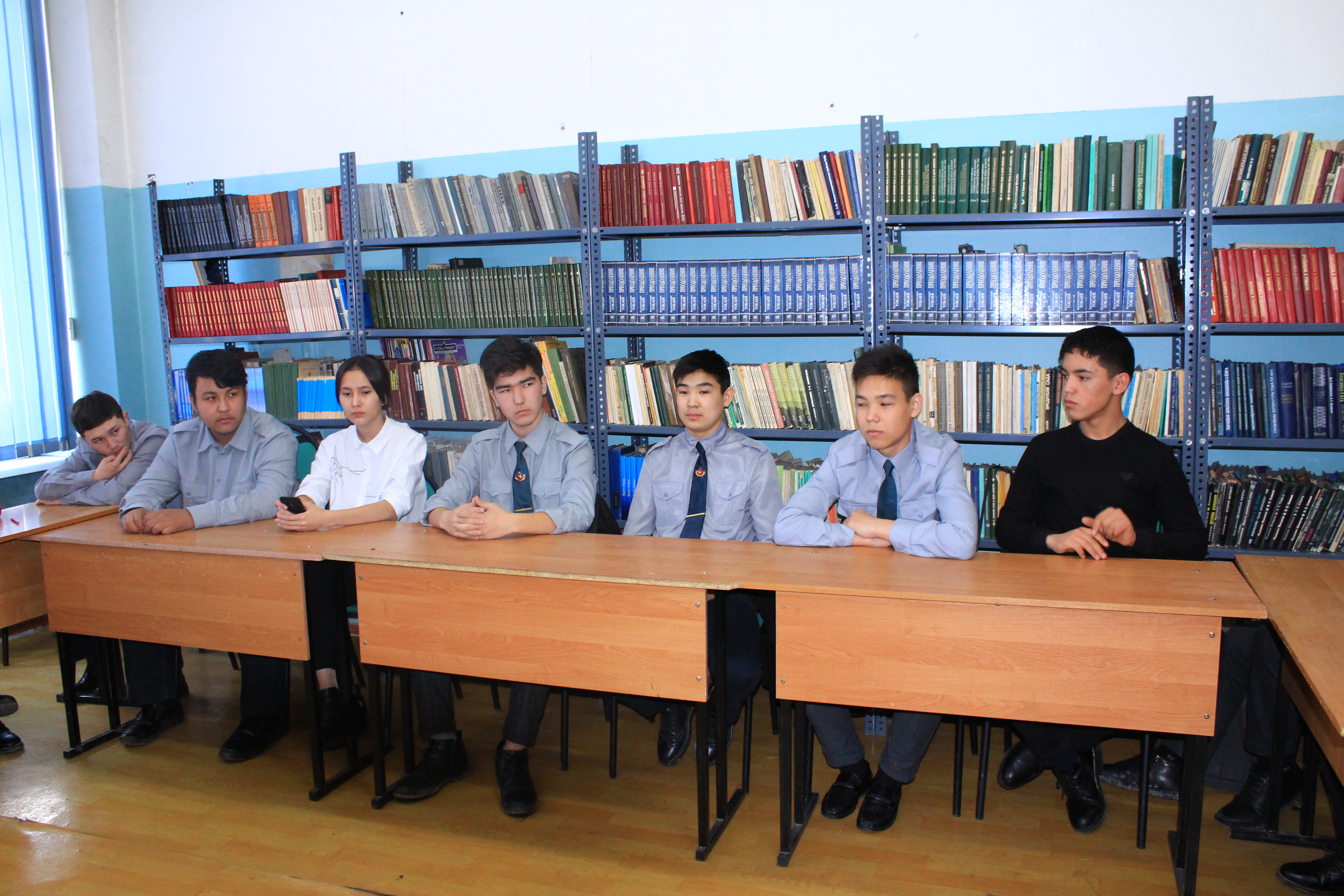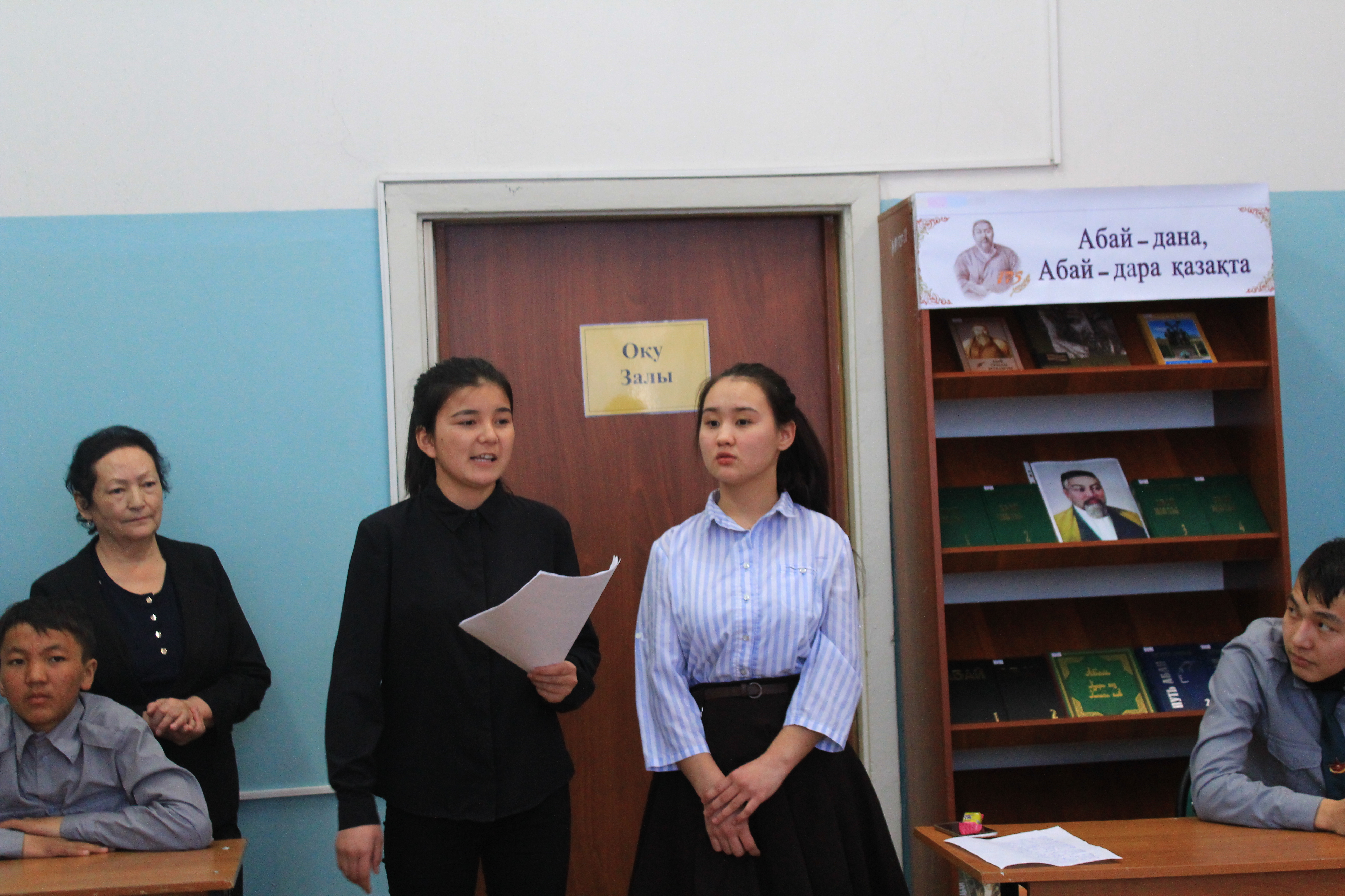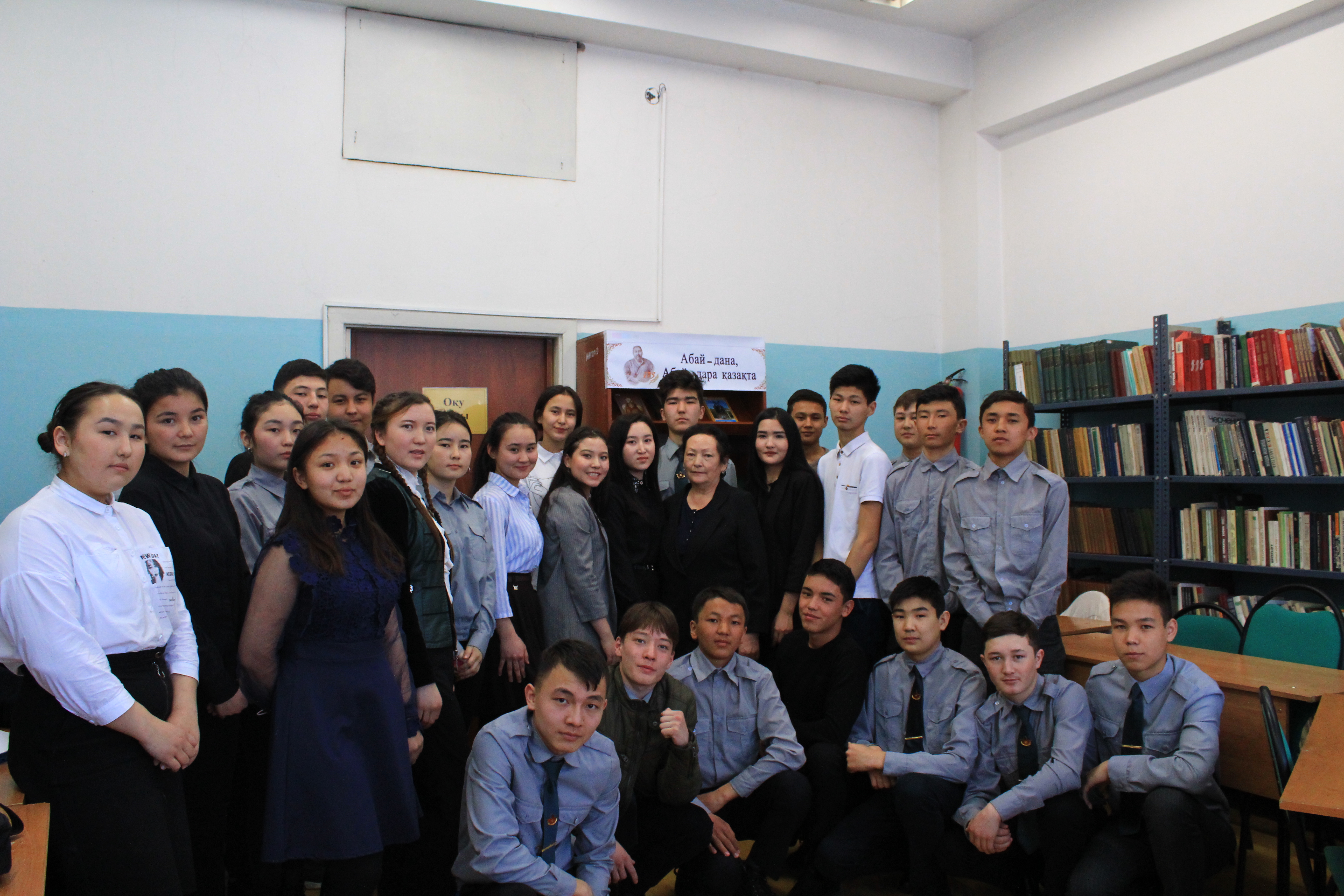 Заведующая библиотекой С. Бейсбаева ознакомила студентов и преподавателей с поэтическим и философским наследием поэта, работой исследователей его творчества.