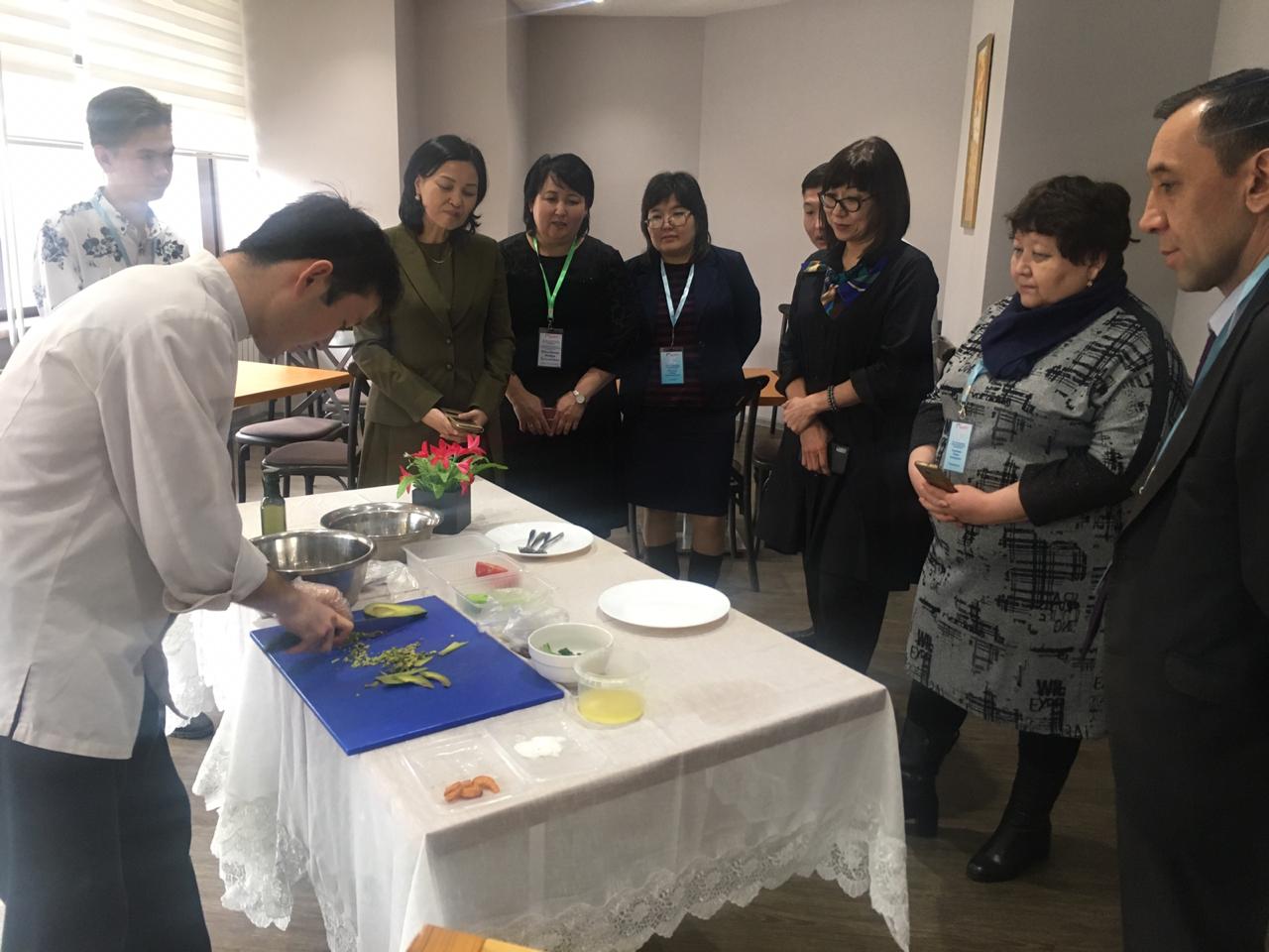 4 марта выпускник колледжа специальности 1226000 – Технология и организация производства продукции предприятий питания колледжа КазИТУ Жумалиев Берик продемонстрировал мастер-класс по приготовлению салата "Авокадо". В настоящее время работает в отеле”Rixos".