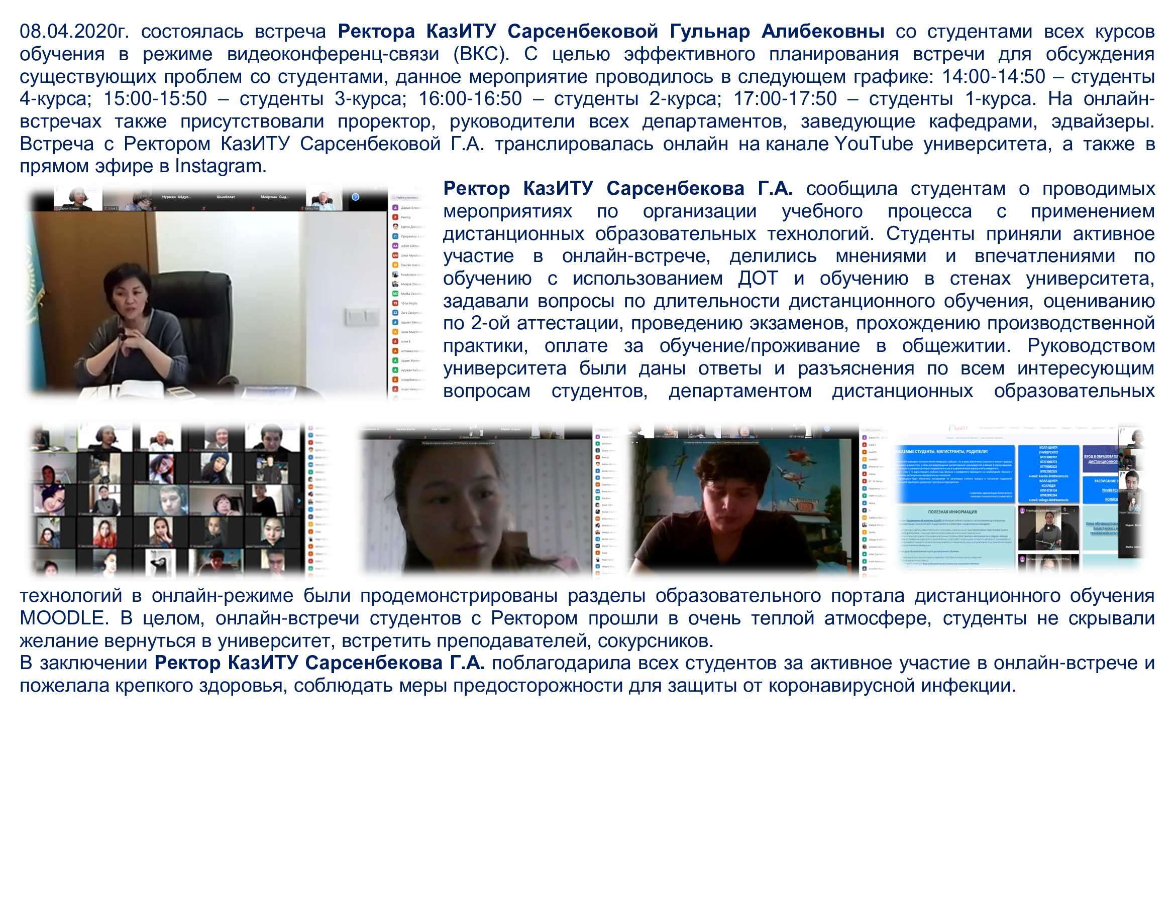 Встреча Ректора КазИТУ со студентами в режиме ВКС