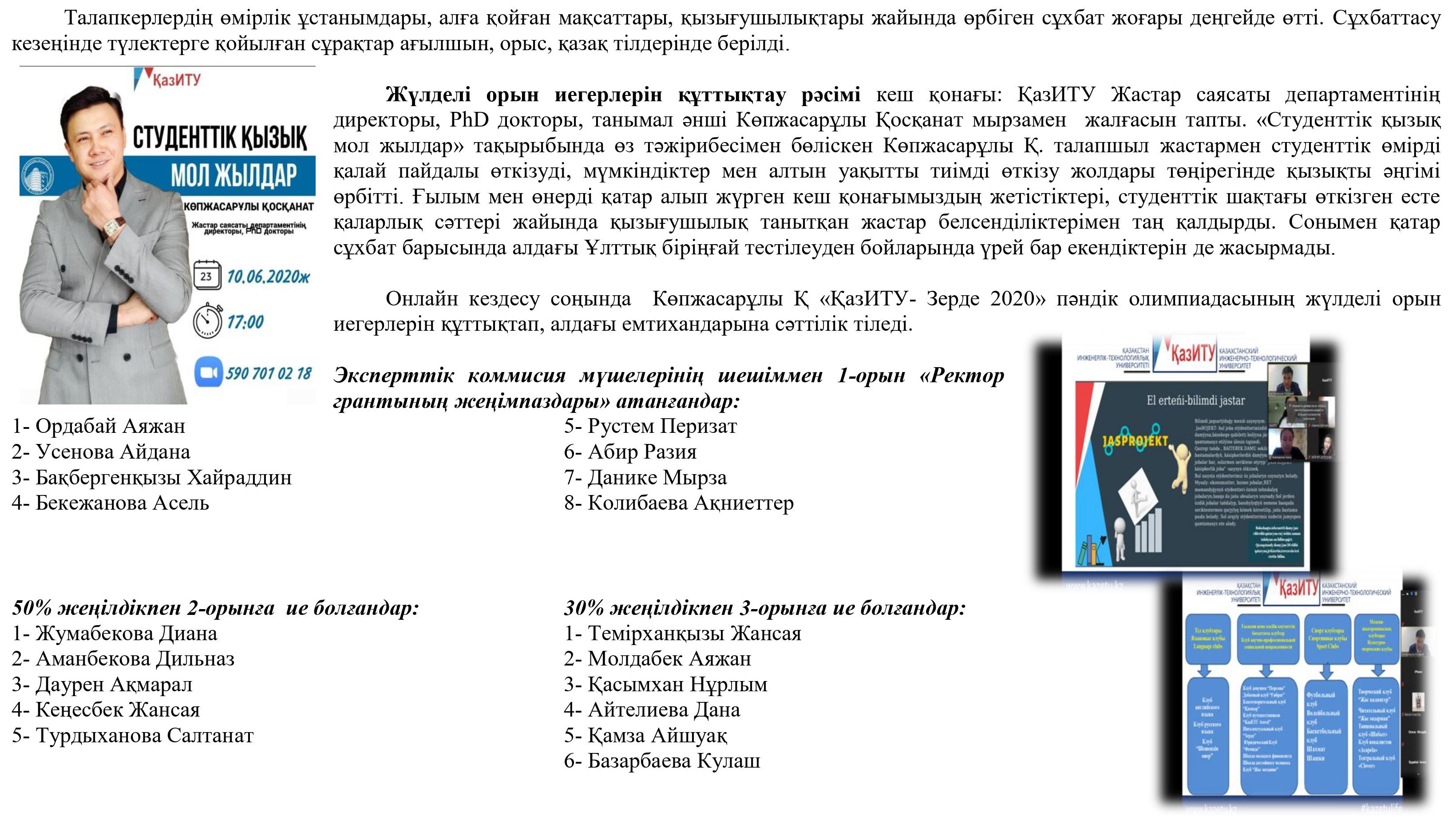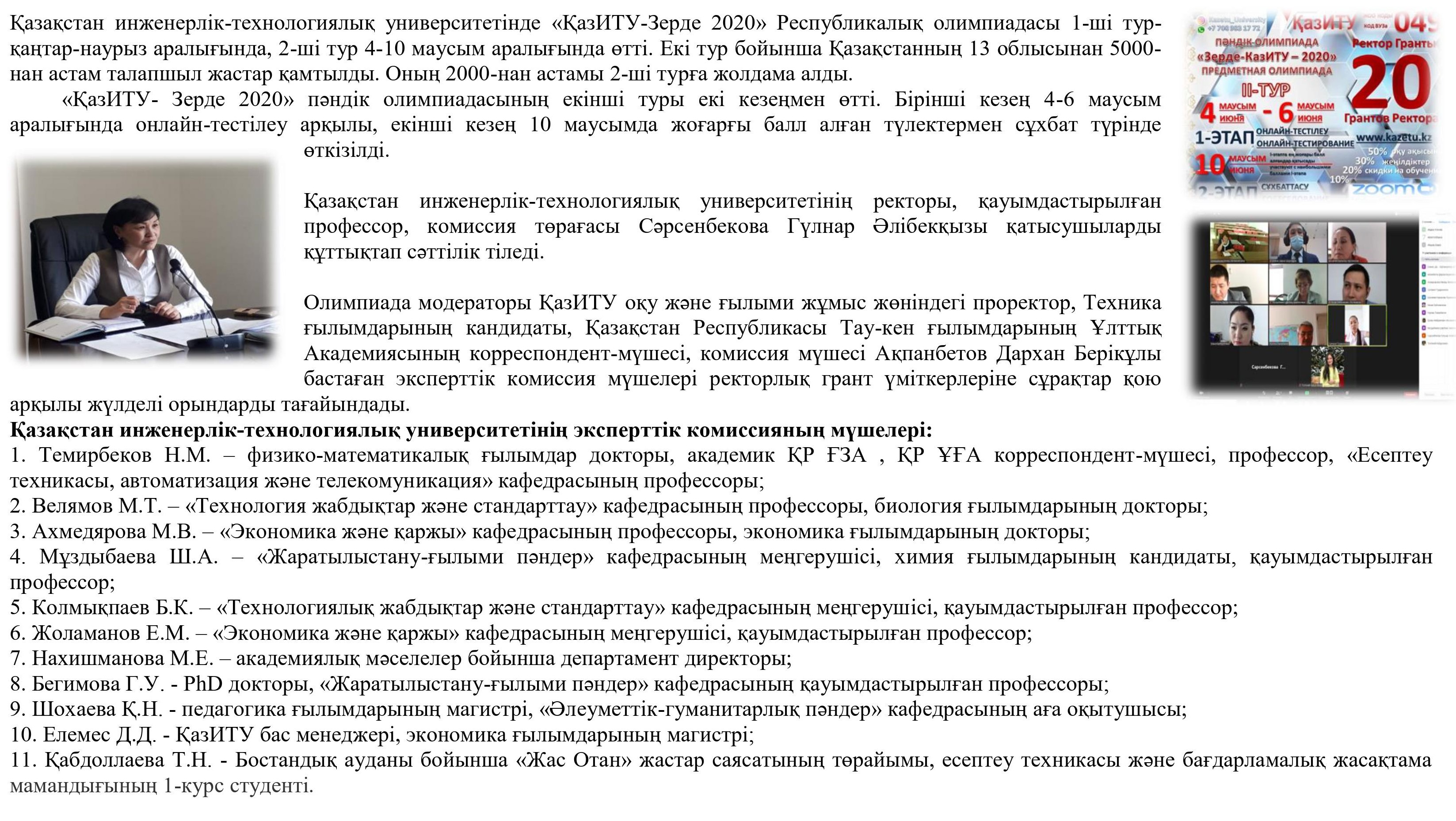 «ҚазИТУ- Зерде 2020» олимпиадасы өз мәресіне жетті