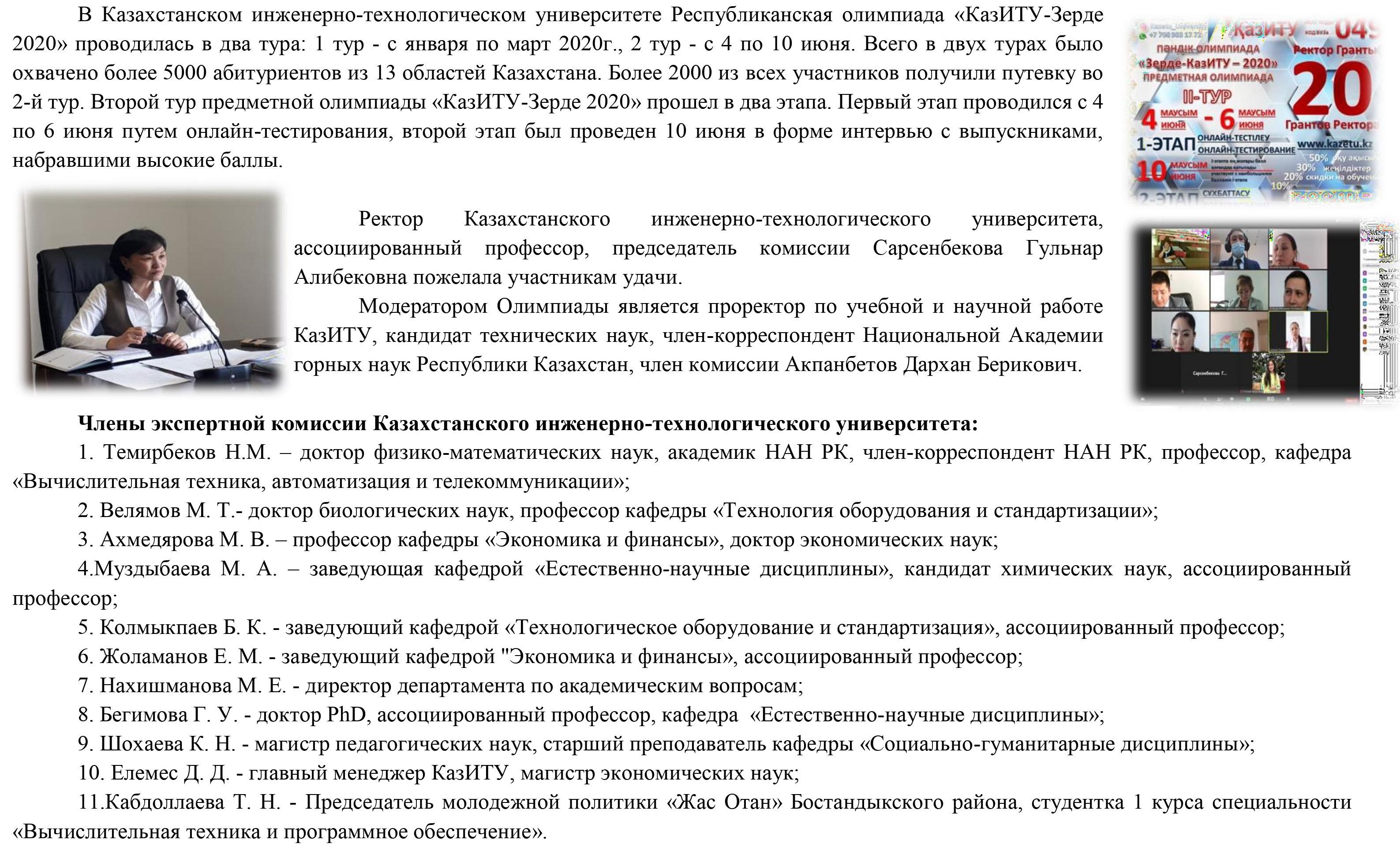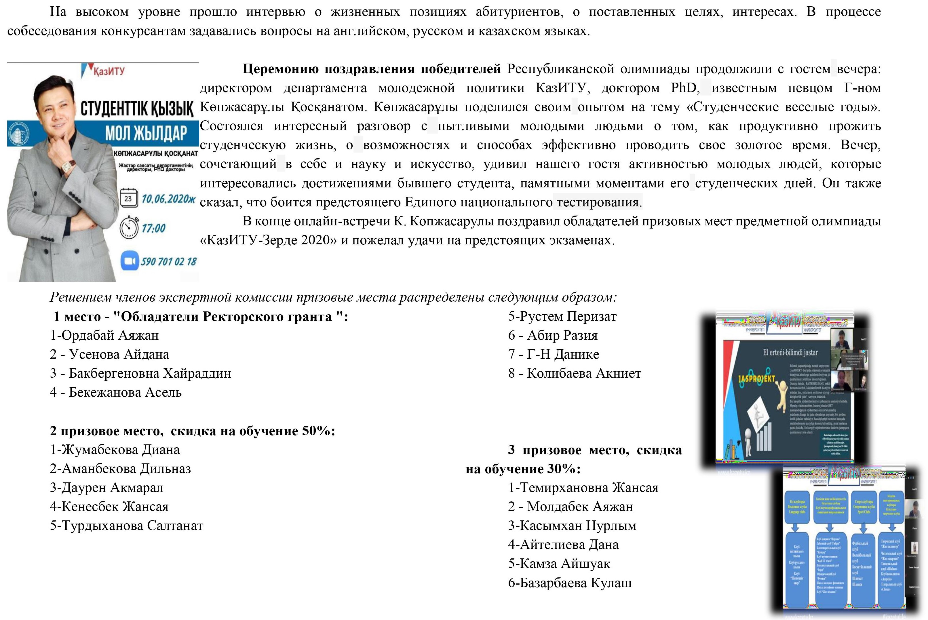 Завершилась Олимпиада «КазИТУ-Зерде 2020»