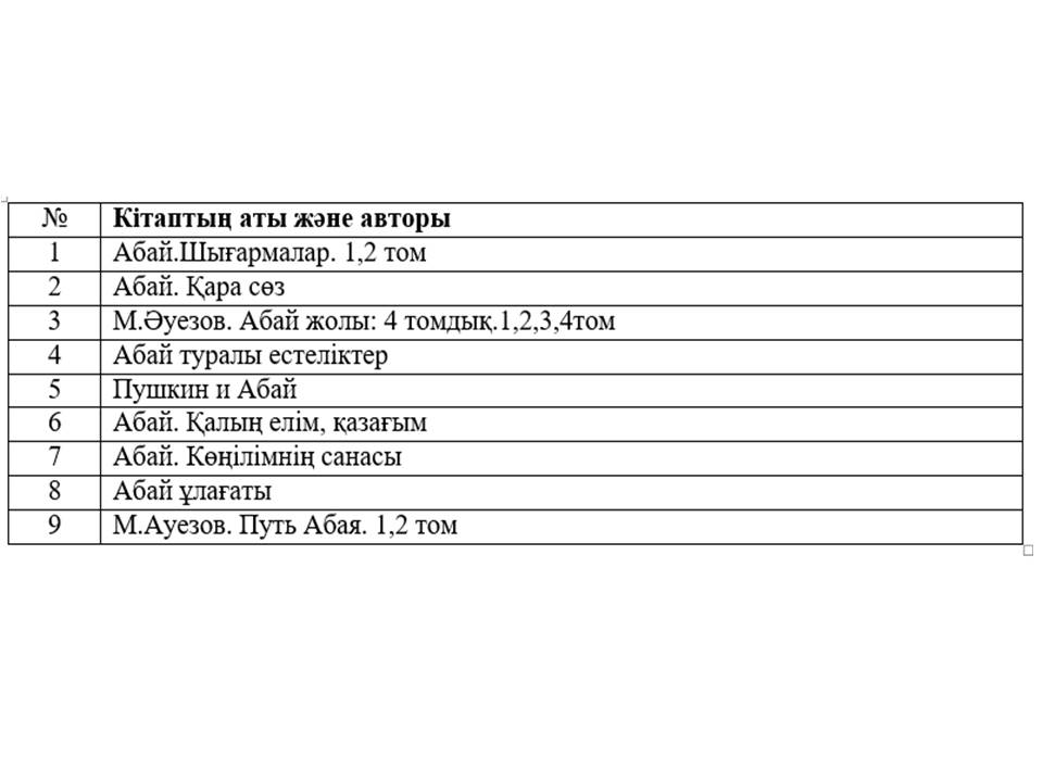 В связи с 175-летием со дня рождения Абая, сотрудниками научной библиотеки была организована книжная выставка «Абай дана, Абай дара қазақта.... и в честь 1150-летия Аль – Фараби были организованы мероприятия и выставки «Ұлық даланың ұлы тұлғасы-Аль-Фараби», в которых приняли участие студенты и преподаватели университета и колледжа. Фонд научной библиотеки пополнился собственными произведениями Абая.: