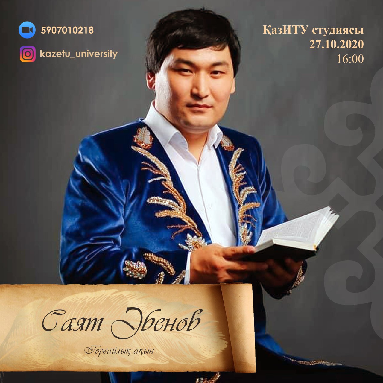 Уважаемые студенты! Рубрика «Студенческие интересные годы!" будет продолжена в онлайн режиме. На этот раз в гостях у онлайн студии КазИТУ - талантливый поэт- Саят Абенов