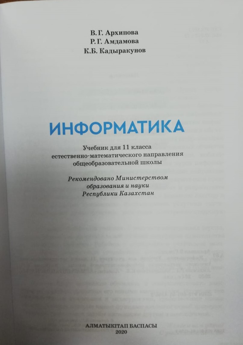Ассоциированный профессор кафедры «Вычислительная техника автоматизация и телекоммуникации» Казахстанского инженерно-технологического университета Кадыракунов Кубаныч Байгазиевич стал автором учебника естественно-математического направления «Информатика» для учащихся 11 класса.