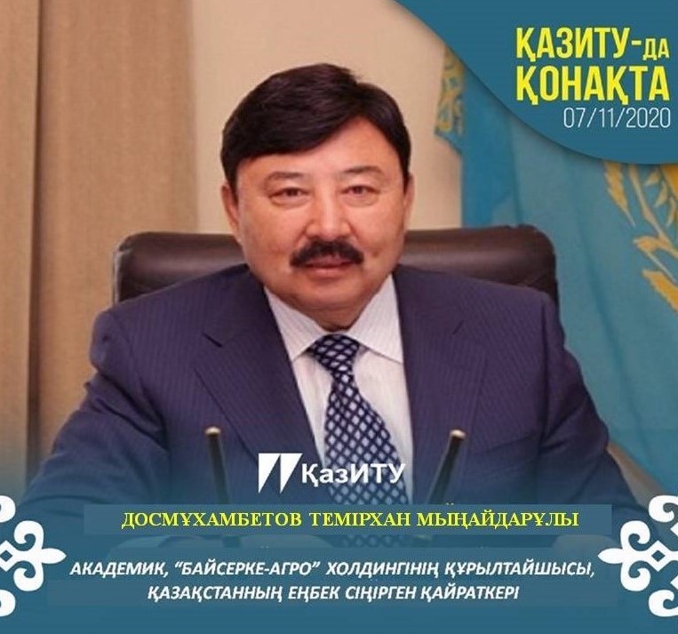 7 ноября 2020 года Казахстанский инженерно-технологический университет с рабочим визитом посетил академик, учредитель холдинга «Байсерке агро», Заслуженный деятель Казахстана