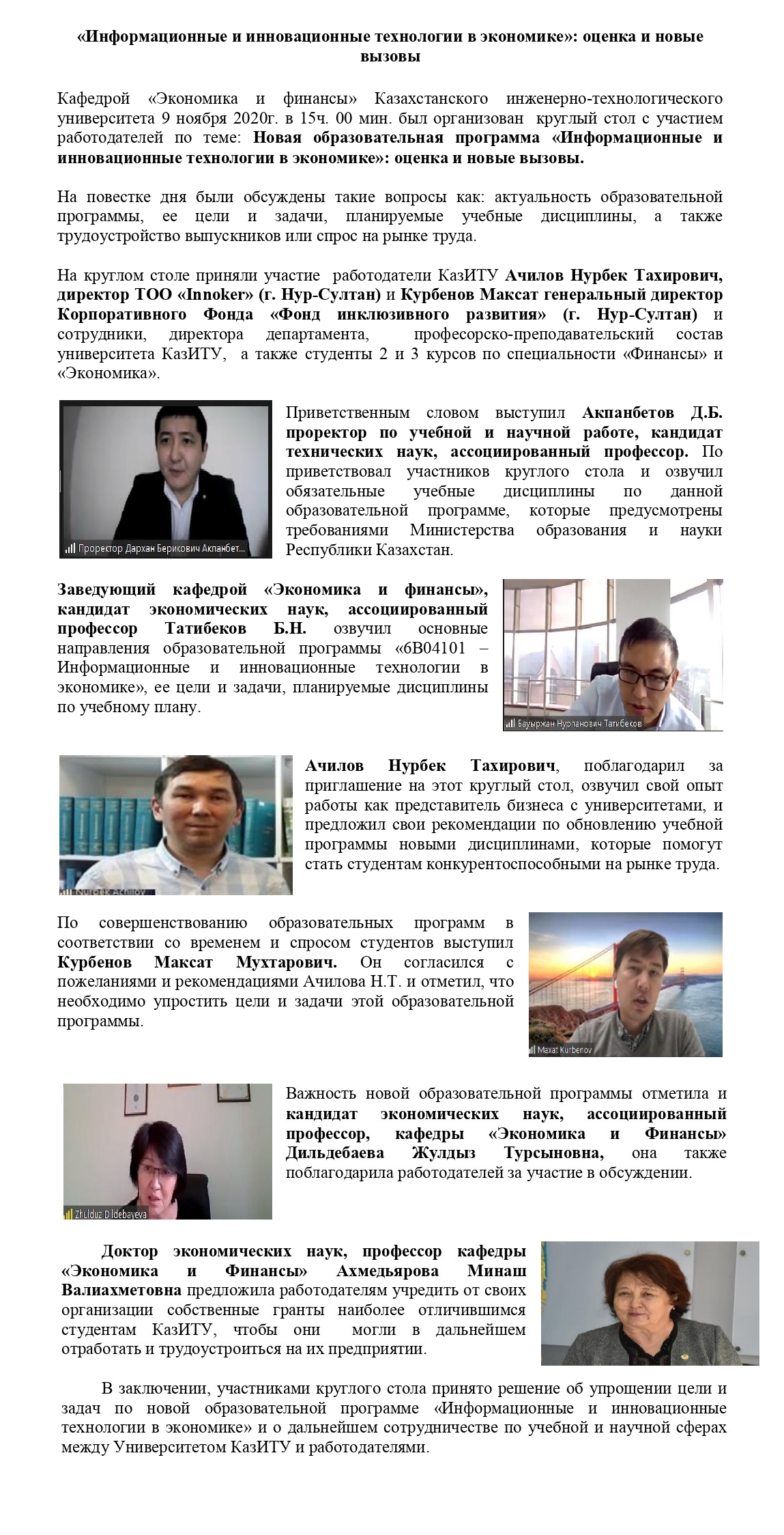Онлайн круглый стол:«Информационные и инновационные технологии в экономике»