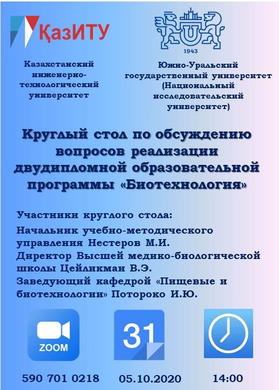 Круглый стол по обсуждению вопросов реализации двудипломной образовательной программы "Биотехнология"