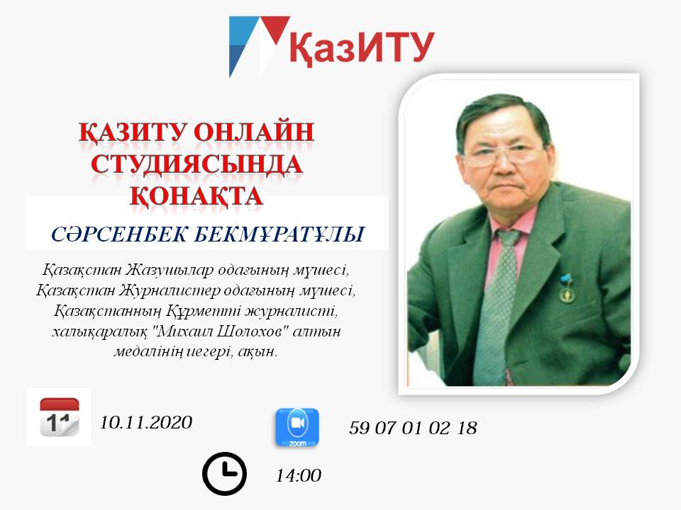 ҚазИТУ-да 10 қазан 2020 жылы сағат 14-00-де Қазақстан Жазушылар одағының,Қазақстан Журналистер одағының мүшесі, Қазақстанның Құрметті журналисті, халықаралық «Михаил Шолохов» алтын медалінің иегері Сәрсенбек Бекмұратұлымен онлайн кездесу өтті. Ақын әңгімені өзінің туып өскен жеріне деген сағынышынан бастады. Балалық бал дәурен кезіндегі көрген қиыншылық, ауылдың қиын-қыспақ кездегі ауыр тіршілігін көзімен көріп жүрген жас балғын 8-сыныпта оқып жүргенінде алғашқы өлеңін жазғанынын тебірене айтты. Ауыл жағдайына көңіл бөлуге аудан, ауыл басшыларын сынаған мақаласы аудандық кейіннен облыстық тіпті республикалық қазіргі «Егемен Қазасқтан» сол кездегі «Социалистік Қазақстан» газетінің беттерінде жарияланып елге танымал бола бастады. Осыдан журналист мамандығына оқуға түсуді армандап, Алматыға келеді. Қайсар да, қайратты жас жігіт алған бетінен қайтпай қатарынан 6 жыл бойы оқуға тапсырады. Әскери борышын өтеген соң КазГУ-дің журналистика факультетіне сырттай қабылданып, арманы орындалады.