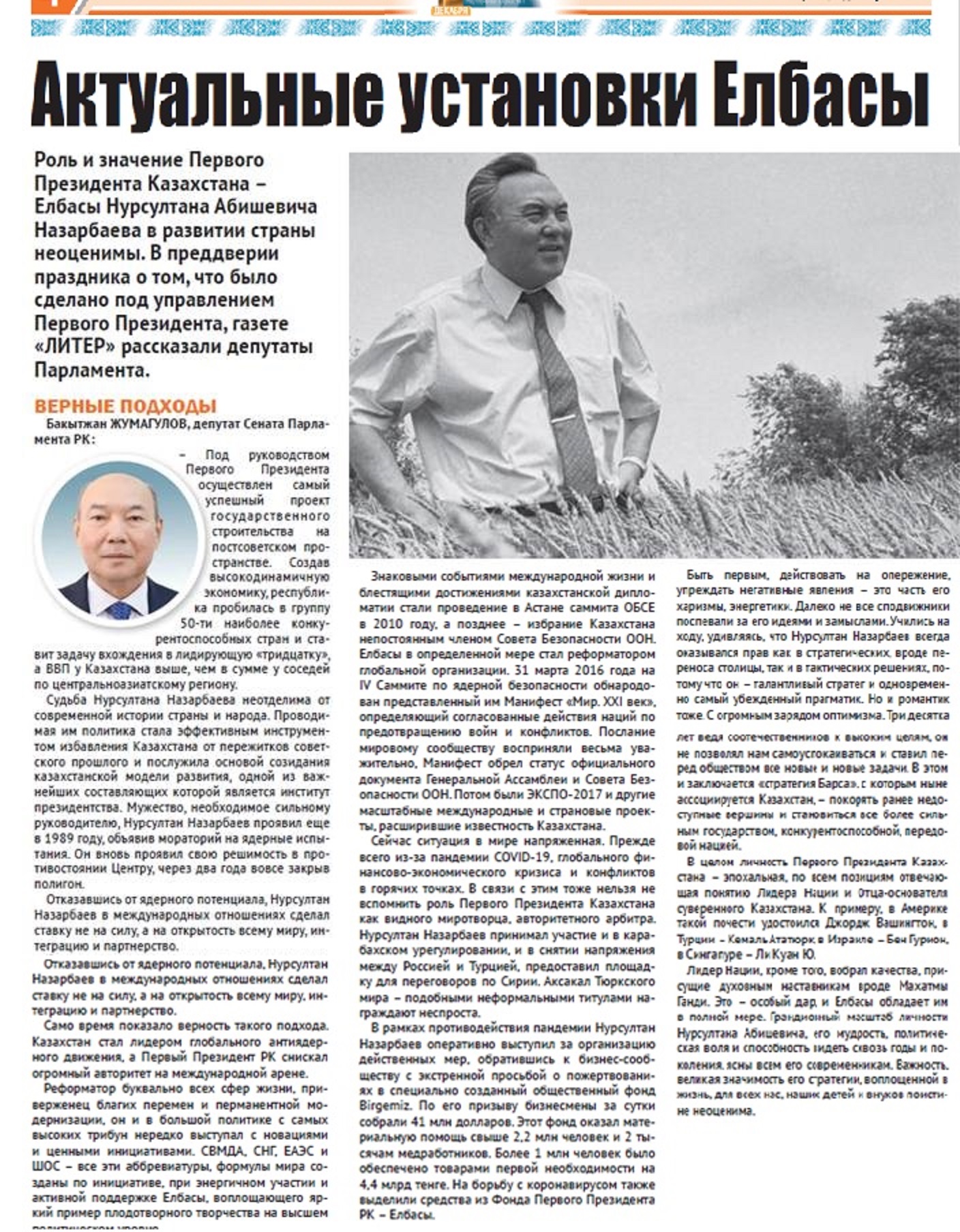 Актуальные установки Елбасы.