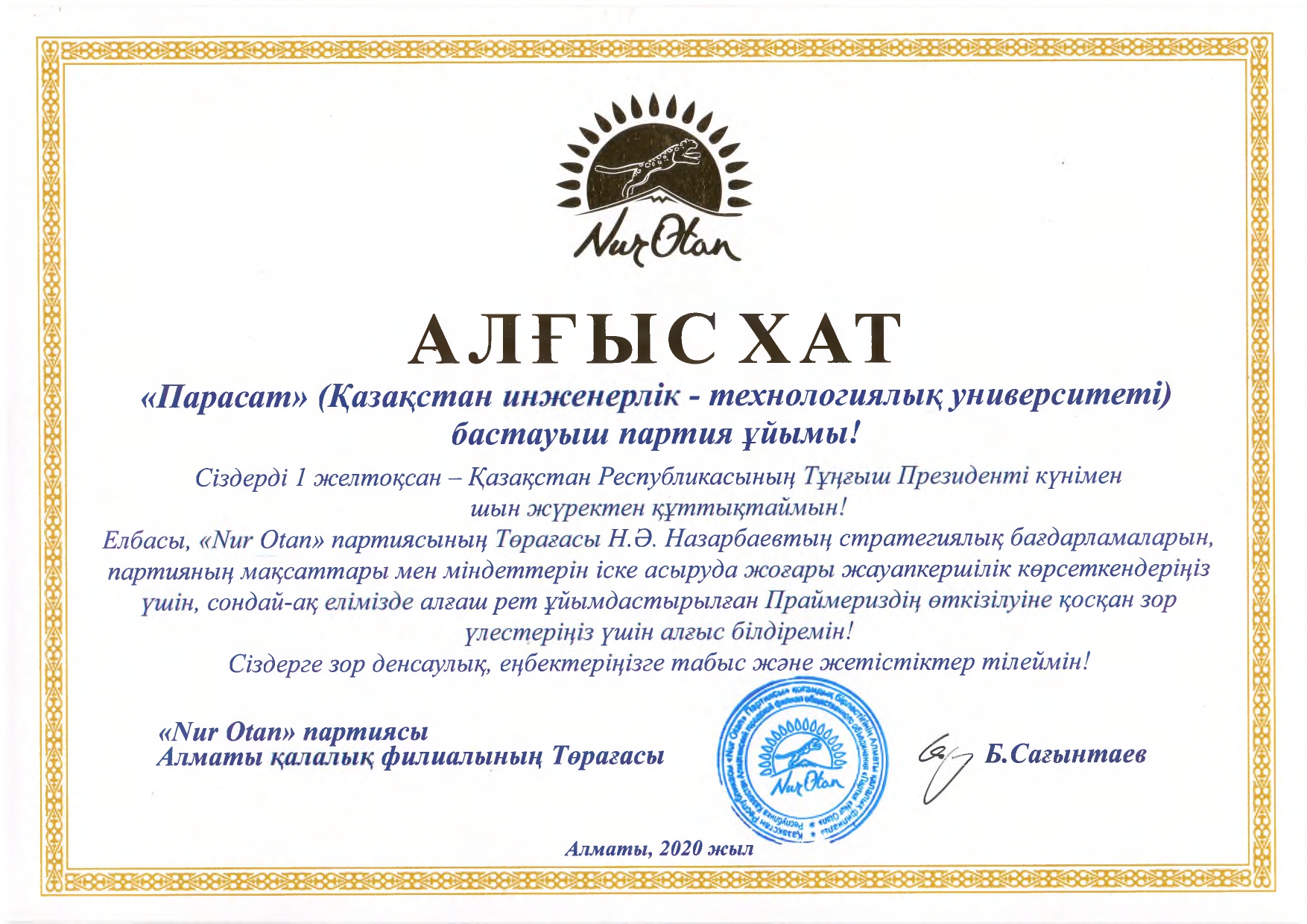 Благодарственное письмо!