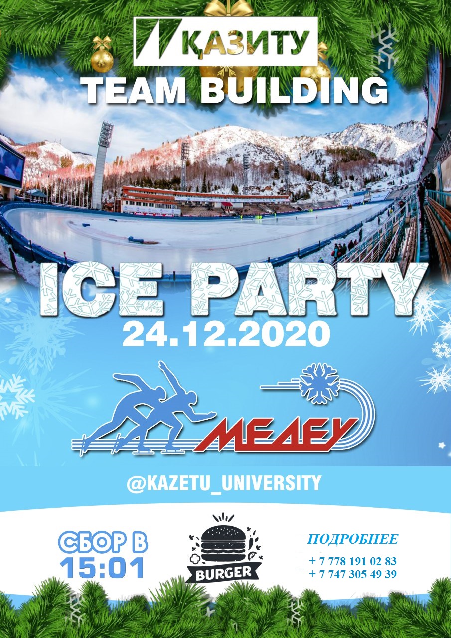 ICE PARTY-2020 Уважаемые коллеги, приглашаем вас на очередной коллективный отдых в преддверии новогодних праздников! На этот раз нас ждет самый крупный высокогорный каток в мире - Медеу!