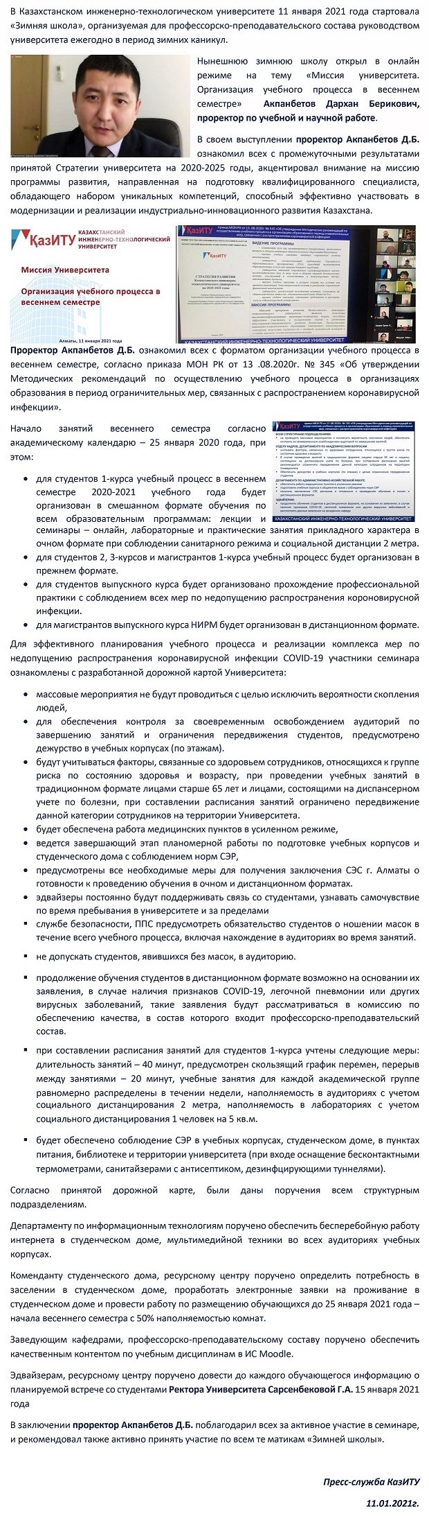 Миссия университета. Организация учебного процесса в весеннем семестре