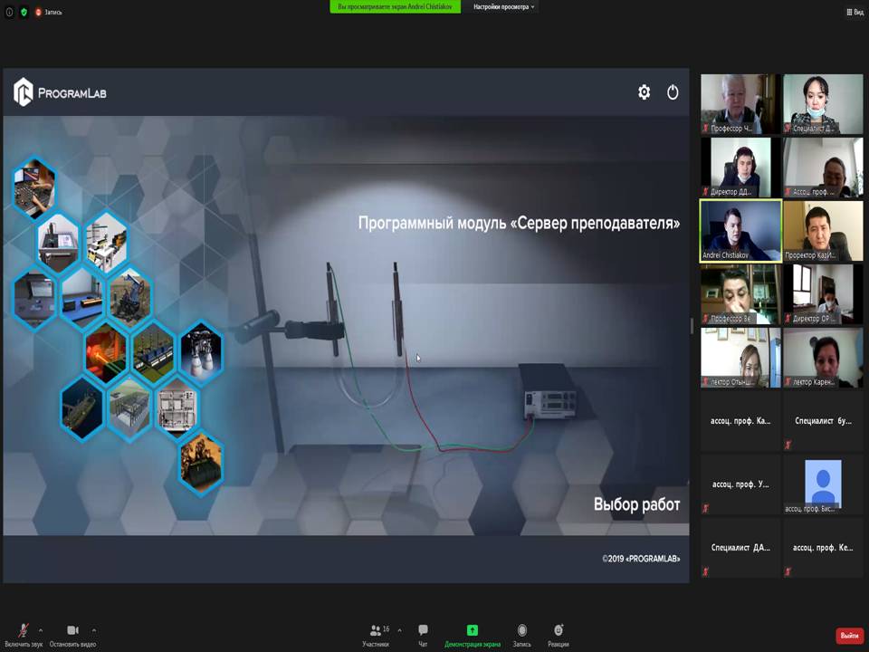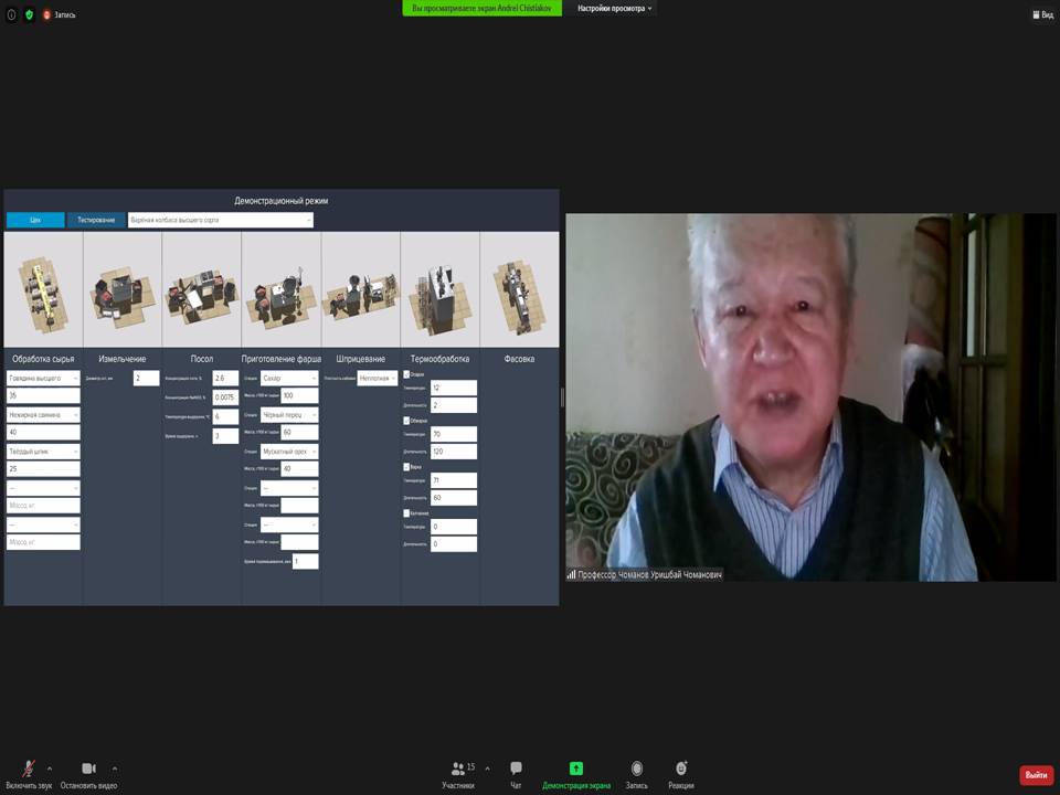 16 февраля 2021 года прошла онлайн встреча с ООО НПП "Учтех-Профи" с проректором Акпанбетовым Д.Б., специалистом Департамента по академическим вопросам Майкотов Б.Н., директором офис-регистратуры Елемес Д.Д., директором Департамента информационных технологий Динисламов Е.Д., а также профессорско-преподавательским составом кафедры «Технология, оборудование и стандартизация» по приобретению виртуальной лаборатории , а также физической модели. В результате прошлой встречи, было решено рассмотреть виртуальную лабораторию «Технология колбасных изделий». Выступил представитель ООО НПП "Учтех-Профи" который начал свою демонстрацию с показа слайдов по виртуальному учебному комплексу «Колбасные изделия». Он показал програмные модули входящие в программу виртуального учебного комплекса, объяснил принцип работы поэтапно. Конкретно остановился на объяснениях принципа работы «Сервер преподавателя» в котором было указано, что каждый преподаватель имеет возможность создания своей базы тестовых заданий по указанной дисциплине. На примере показал действия преподавателя при использовании данной программы. Представителем компании – производителем были предоставлены слайды с оборудованием, которые необходимы при подготовке специалистов специальностей «Технологические машины и оборудование», «Технология пищевых производств» и «Технология перерабатывающих производств».