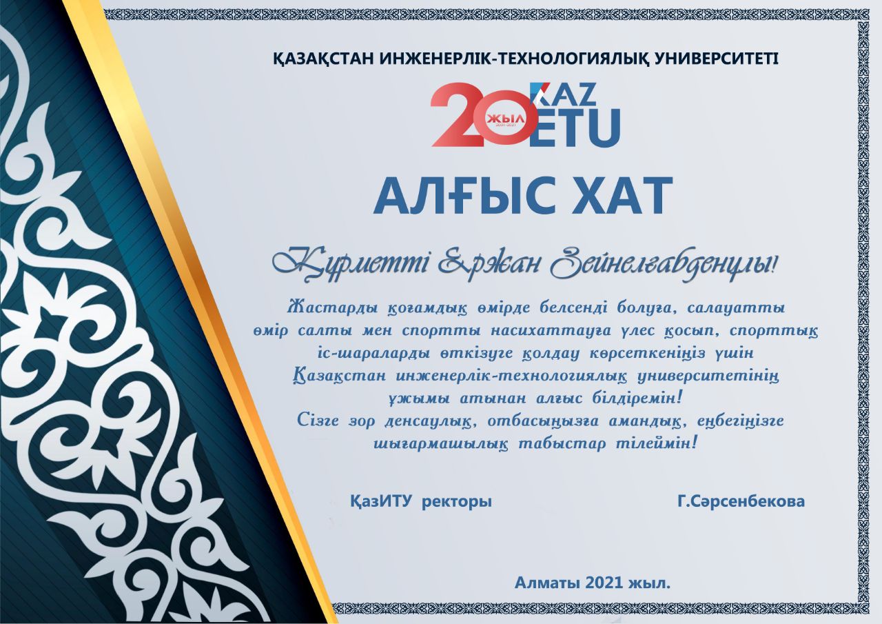 Благодарим члена родительской ассоциации университета Ерпжана Зейнелгабденовича за спонсорство и поддержку проведения соревнований!