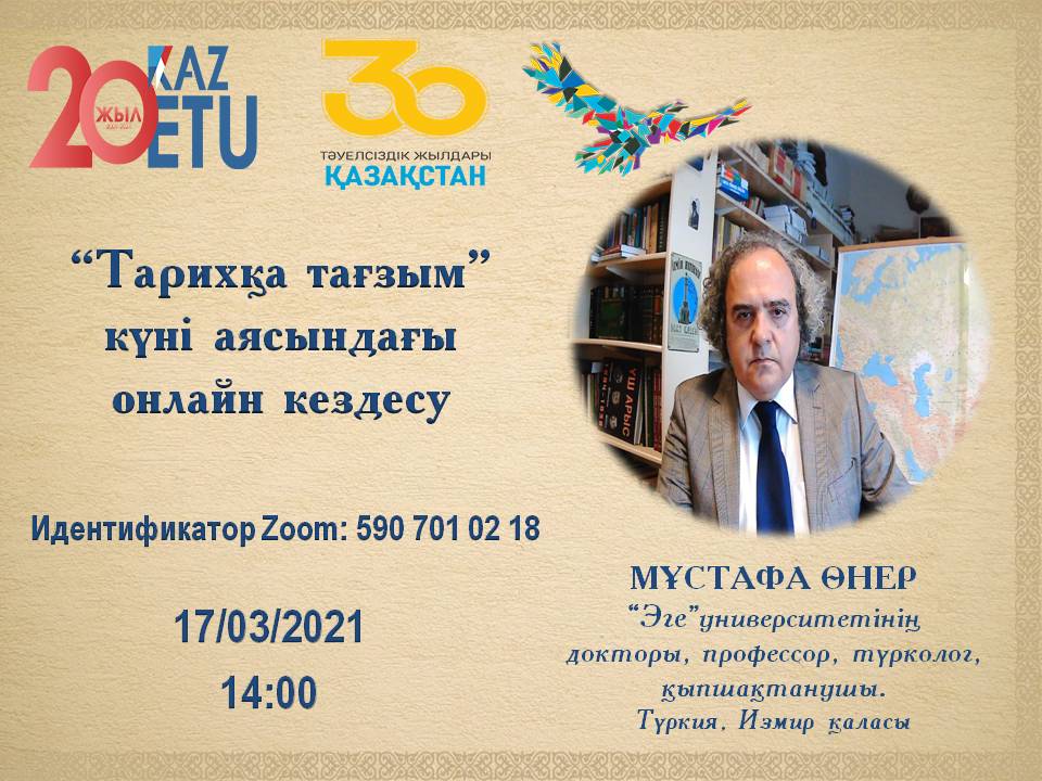 Почетным гостем встречи стал доктор, профессор Университета "ЭГЕ", тюрколог, ученый-кыпчаковед Мустафа Онер (Турция, Измир). В ходе встречи г-н Мустафа Онер поделился на казахском языке множеством интересных фактов, связанных со средневековой историей Казахстана и историей Алаша. Во встрече приняли участие профессорско-преподавательский состав университета и преподаватели других вузов г. Алматы. Это кандидаты исторических наук, ассоциированные профессора Б. Кабдушев (АУЭС), Г. Шашаева (МАБ), Ф. Шамшиденова (КазНац ЖПУ), С. Сагинаева (Нархоз). В ходе встречи было задано много вопросов, на которые Мустафа Онер дал исчерпывающие ответы и выразил надежду на будущие встречи.