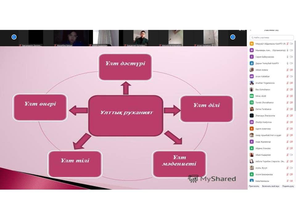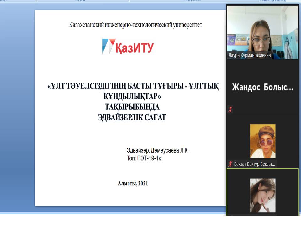 В казахстанском инженерно – технологическом университете, прошли эдвайзерские часы на тему: «популяризация национальных ценностей в эпоху глобализации-основа комплексной модернизации», с целью привития подрастающему поколению национальных ценностей.