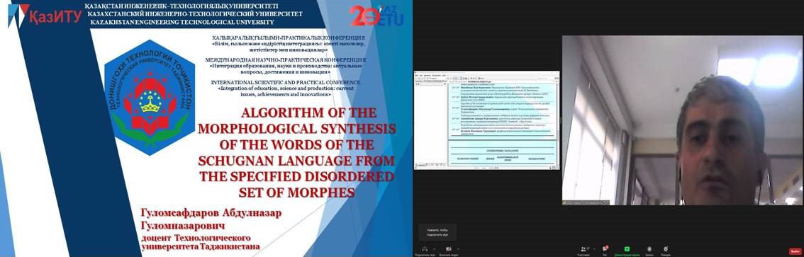 Доцент Таджикского технологического университета (Таджикистан) Абдулназар Гуломсафдаров представил алгоритм морфологического синтеза слов в шугнанском языке данного нерегулярного набора Морфов.