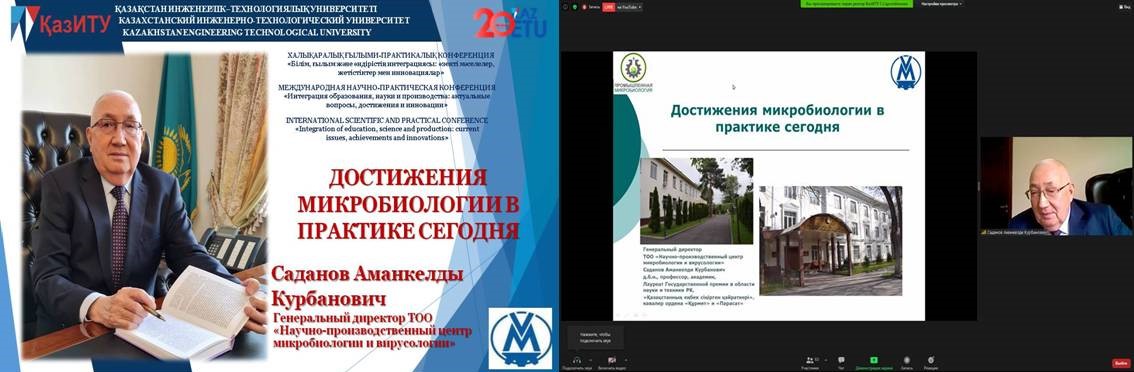 «Интеграция образования, науки, производства» – это источник совместного использования потенциала образования, науки, производства во взаимовыгодных условиях. В настоящее время в сложных условиях рыночной экономики одной из наиболее острых и актуальных проблем является подготовка квалифицированных специалистов. Темой обсуждения и анализа конференции стали и пути решения данной проблемы, в ходе которой руководители отечественных и зарубежных научно-исследовательских институтов, вузов, производств поделились опытом реализации полного цикла «Подготовка специалистов совместно с ВУЗами - научные исследования – разработка технологий – внедрение в производство и их коммерциализация», - сказала Гульнар Алибековна. С докладом о достижениях микробиологии в современной практике выступил генеральный директор ТОО «Научно-производственный центр микробиологии и вирусологии» Амангельды Саданов. «Впервые в республике разработаны технологии и организовано производство новых отечественных биопрепаратов 8 наименований для сельского хозяйства, охраны окружающей среды, медицины и ветеринарии, реализация которых ежегодно составляет 40-50 тонн», - сказал А. Саданов.