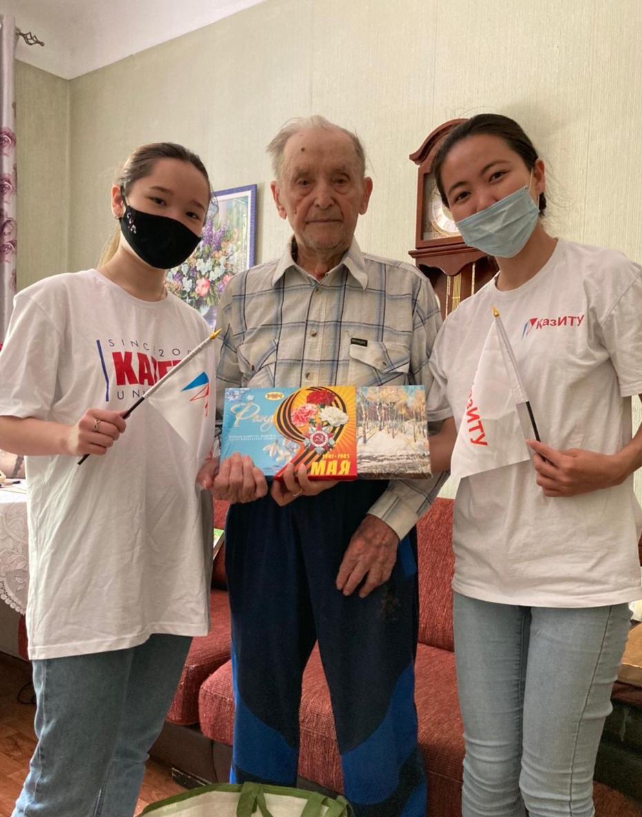 В рамках проекта «Ардагерлерді ардақтайық» партии Нұр Отан, Бостандыкского района г. Алматы, при поддержке ректора КазИТУ Сарсенбековой Г. А., ветераны Великой Отечественной войны в этом году не остались в стороне. Специалист департамента молодежной политики Селбаева Динаш и победитель конкурса «Мисс КазИТУ» Алибек Айдана, заместитель директора по учебно-производственной работе колледжа КазИТУ Чаяхметова М. М., преподаватель специальных дисциплин Туткышбаева.Т., мастер обучения Сарсенов А. поздравили ветеранов с 76-летием Великой Отечественной войны.