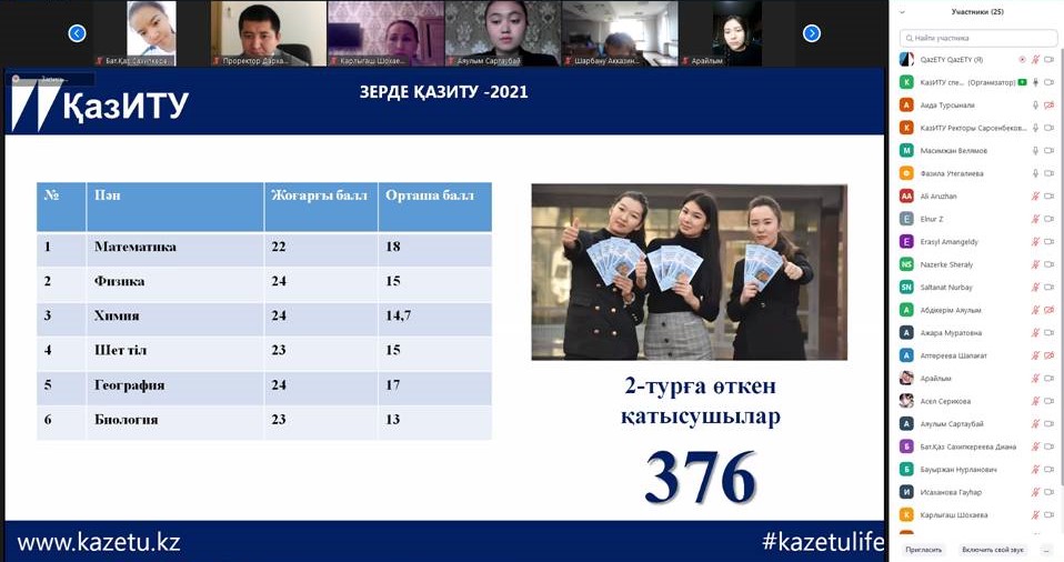 Қазақстан инженерлік-технологиялық университеті еліміздің ертеңі болар жастарды қолдаудан тыс қалмақ емес. Оқу ордамыздың 20 жылдығы қарсаңында жас талапкерлерге болашақ мамандығын таңдауда, түрлі деңгейдегі грант пен жеңілдік беру арқылы қолдау көрсету мақсатындағы республикалық «ҚазИТУ-Зерде» пәндік олимпиадасының ұйымдастырылуы осыған дәлел.